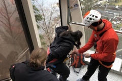 In Zusammenarbeit mit den Salzwelten Hallstatt fand am 13. 3. 2024 die jährliche Evakuierungsübung der Salzbergseilbahn statt. Übungsannahme war eine Vielzahl von unverletzten Personen über die Treppe in die Talstation zu begleiten und eine verletzte Person in einer Trage nach unten abzuseilen. Zuerst wurde die Frau von unserem Erste Hilfe Team behandelt, anschließend in der Kabine in eine Trage umgelagert und beim Abseilen von einem Bergretter begleitet.
