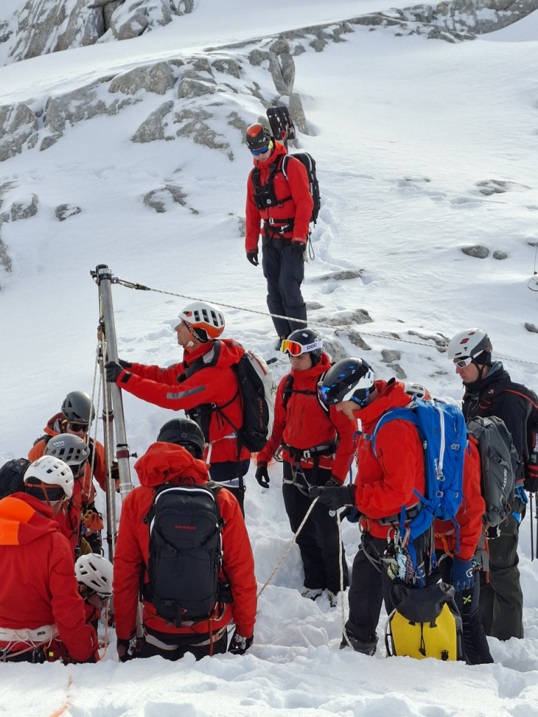 Den Abschluss bildete eine LVS-Übung, bei der jedes Mitglied unseres 15-köpfigen Übungsteams mit dem eigenen LVS-Gerät zwei Personen aus einer fiktiven Lawine lokalisierte.
